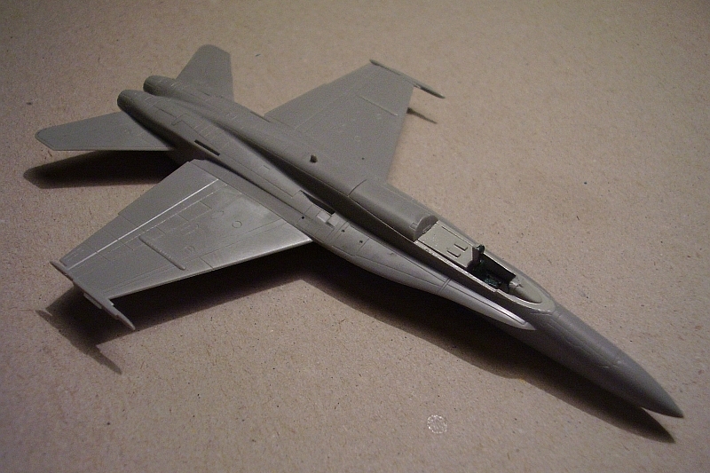 Nice and tiny, some 40 plastic parts (2mm ling stick got me), two atractive camouflages of US and Canadian Hornet.